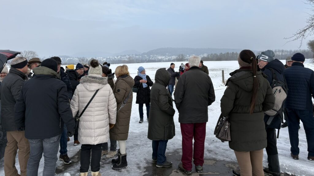 Gestartet wurde um 11 Uhr am Parkplatz des Restaurants Strauch’s, wo sich die Gruppe in geselliger Runde versammelte. Die Wanderung führte dann über die idyllisch verschneiten Feldwege am Fuß des Holzbergs. Selbstverständlich gab es unterwegs auch eine kleine Pause, um kurz zu verschnaufen, die Winterlandschaft zu genießen und sich mit Getränken zu stärken.