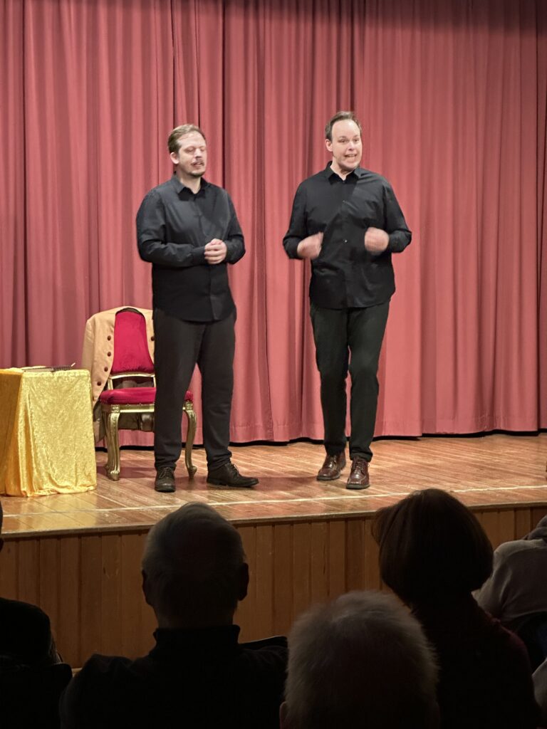 Besonders beeindruckend war, wie Marx und Hillebrand mit minimalen Mitteln maximale Wirkung erzielten. Keine aufwendigen Kulissen, keine opulenten Kostüme und Requisiten– nur ihre Gestik, ihre Mimik und ihr Talent, die Fantasie-Figuren humorvoll lebendig werden zu lassen.