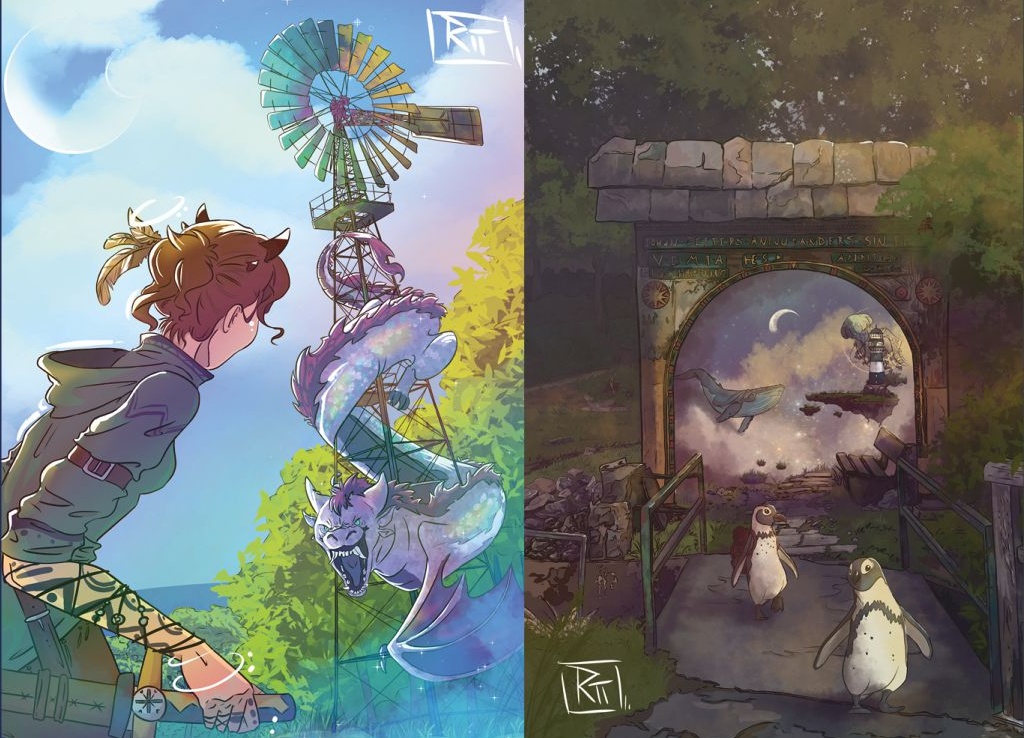 Comic-Szenen und märchenhafte Stadtansichten ergänzen sich